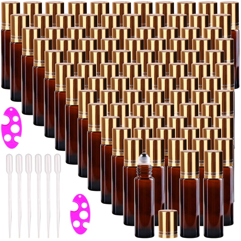 inice 100 10ml Amber Galss Roller Bottles Essential Oils Applicator With Stainless Steel Roller Balls Aluminium Alloy Cap