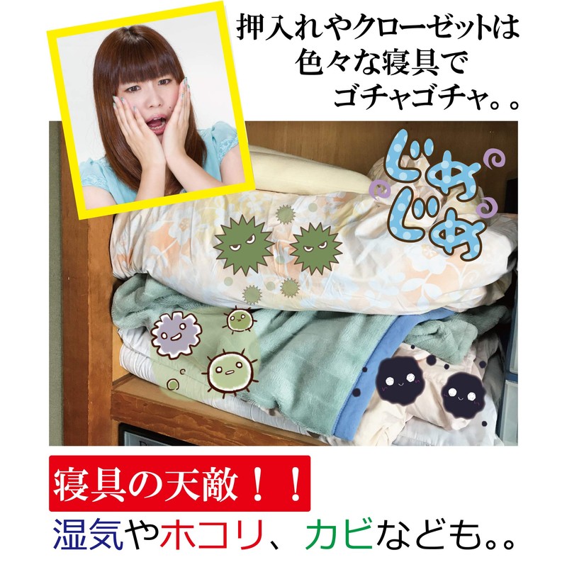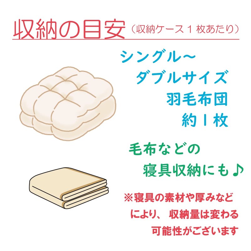 - Storage guide (per storage case): Approximately 1 duvet (from single to double size) *Storage capacity may vary depending on the material and thickness of the bedding being stored