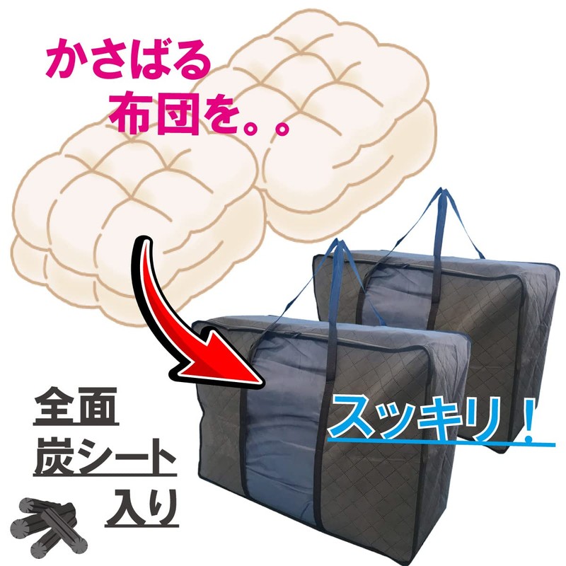 Inico Life Duvet Storage Bag, Full Face, Activated Carbon, 3 Layer Fabric, Storage Case, Long Handle, Single - Double Size, For Double Size, Easy To Carry With Long Handles (Gray, 2 Piece Set)