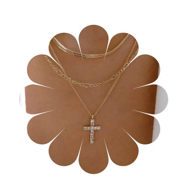 - Gold CZ Cross Chain Necklace is designed with classic color,style can match with almost every outfits.