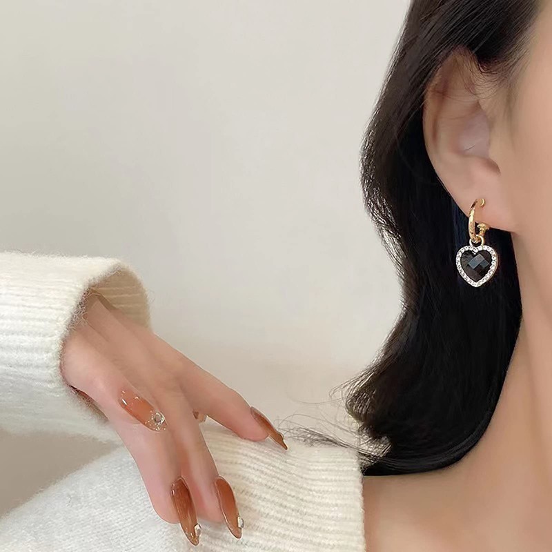 - Black Gem Heart Dangling Earrings earrings as images shown,one size fits most, exquisite and wearable item.