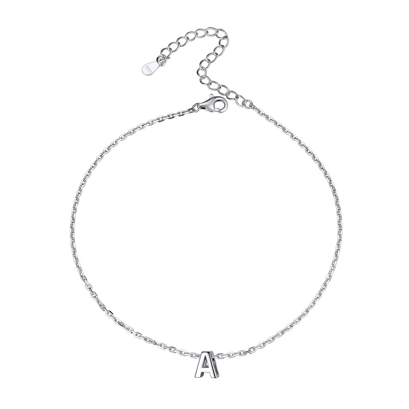 InitiaL Anklet for Women 925 Sterling Silver Adjustable Foot Ankle Bracelet with Initial A