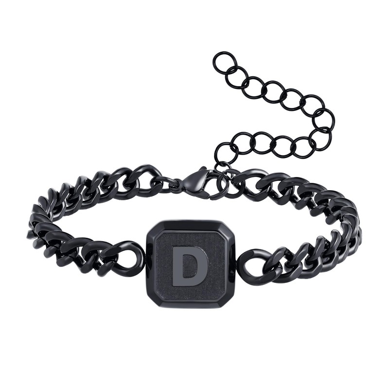 Initial Bracelet Black Squre A-Z Letter Cuban Link Chain Mens Bracelets Adjustable Size Stainless Steel Men Jewelry Gifts for Husband Dad Brother Son(Black D)