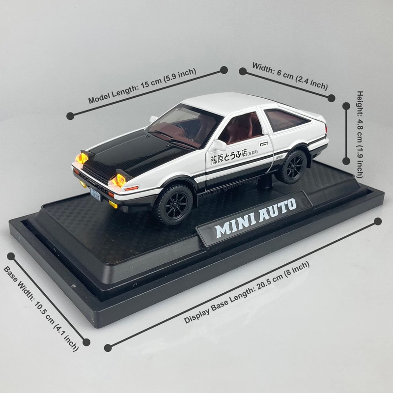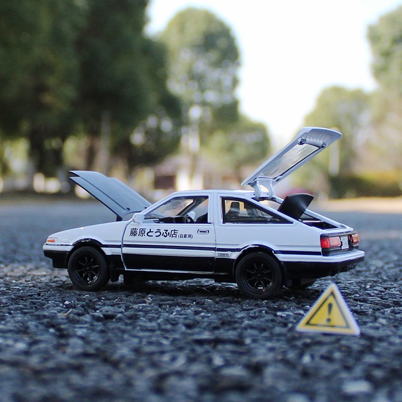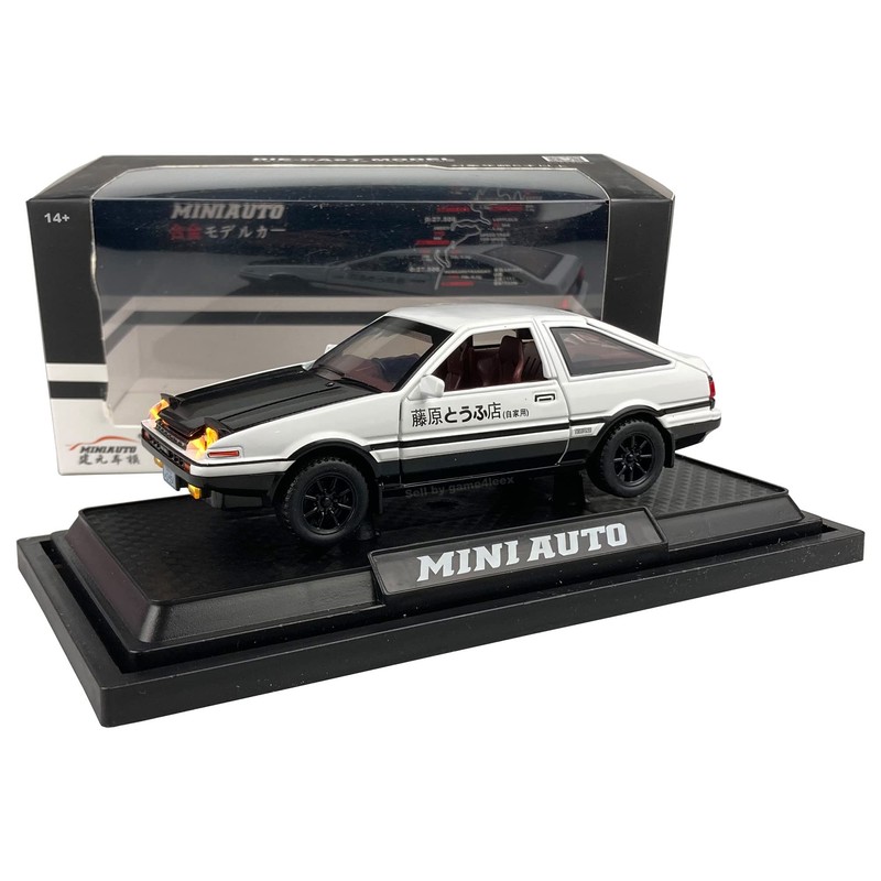 Initial D 1:28 Scale Trueno AE86 Sprinter Alloy Diecast Model Pop-up Headlights (White & Black)