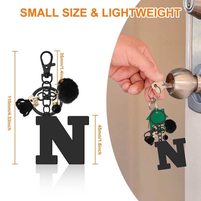 Initial Letter Keyring for Purse Backpacks Handbags Wallet Letter A-Z Keychain Initial Keychain Gifts for Girlfriend Daughter Graduation Birthday Gift Alphabet Initials Keyring with Pom Pom (Letter N)
