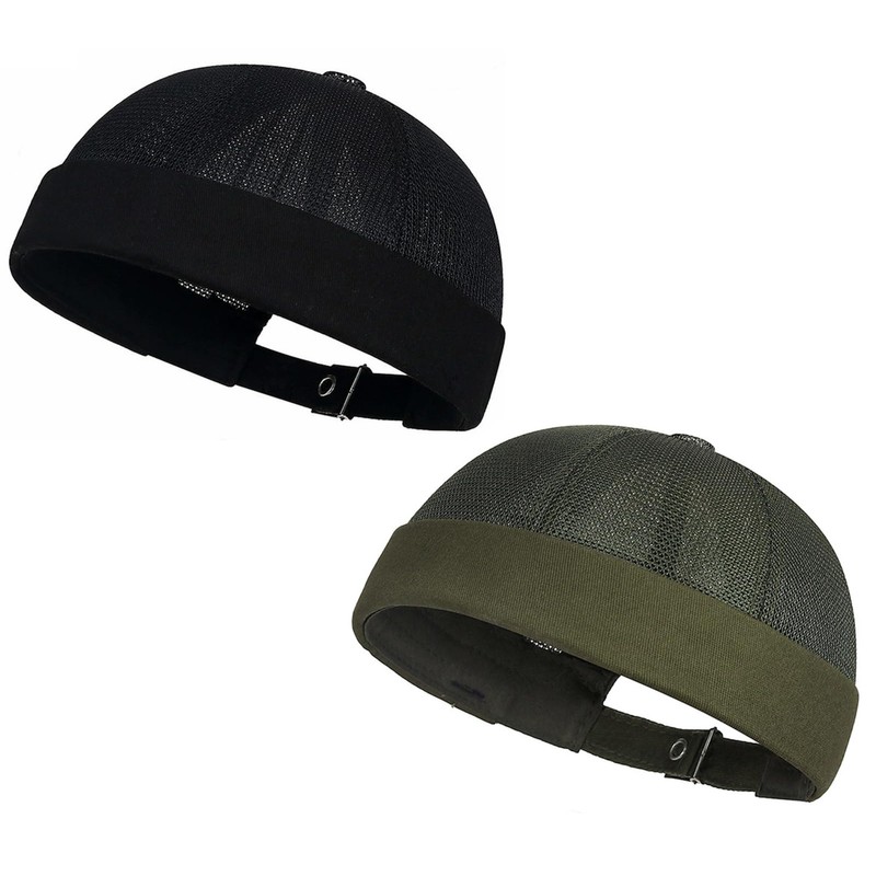 Initlove Docker Hat for Mens Mesh Beanie Cap Breathable Brimless Sailor Hat Black Green
