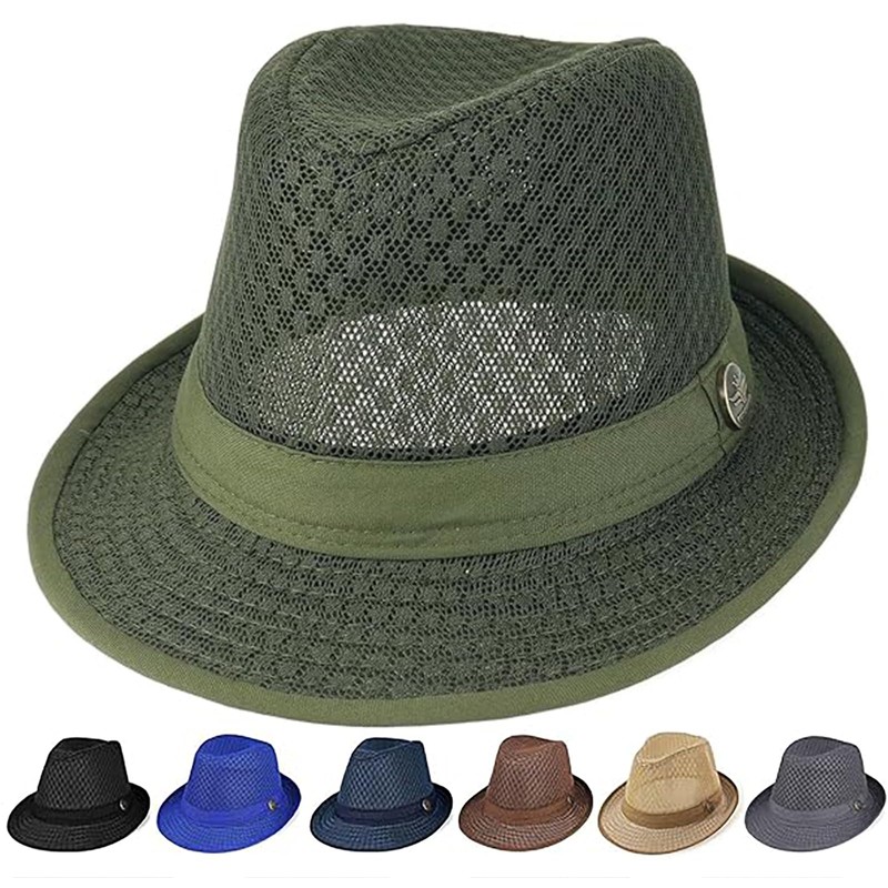 Initlove Mesh Fedora Hat for Men Short Brimmed Trilby Panama Hat Packable Green
