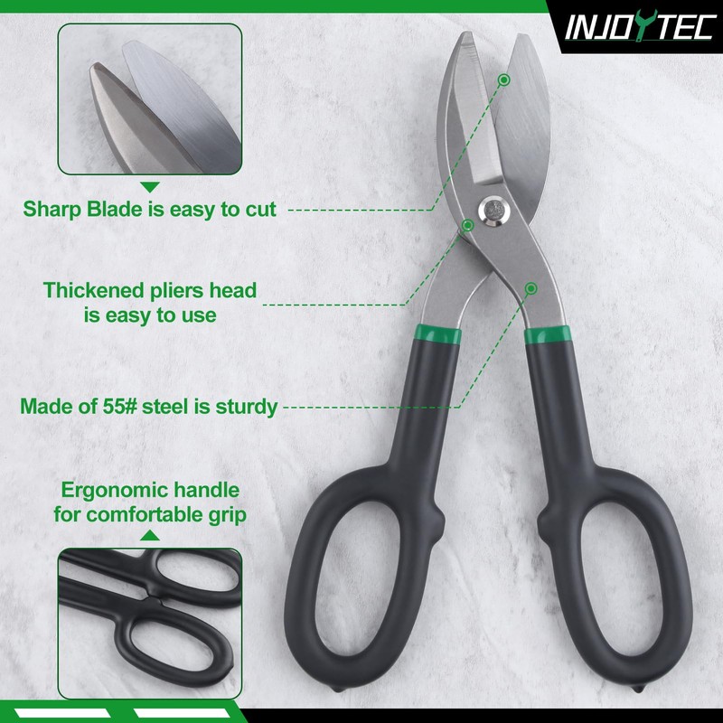INJOYTEC 10 Inch Tin Snips Straight Pattern Tin Snips Cutters Heavy Duty Meta...