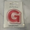 The Letter "G" Adhesive Patch in pink is a 2" embellishment from the brand Ink & Barrel. Made of a cotton blend material, this patch is perfect for adding a personalized touch to letters, numbers, and word-themed crafts or sewing projects. With its adhesive/ sew feature, this patch is easy to apply and ensures a secure attachment for a professional finish.