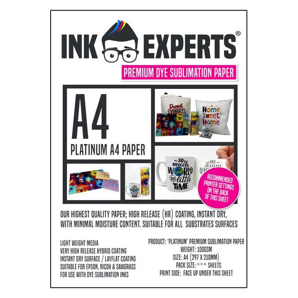 Ink Experts 100gsm Platinum A4 Premium High Release Dye Sublimation Paper (50 Sheets)