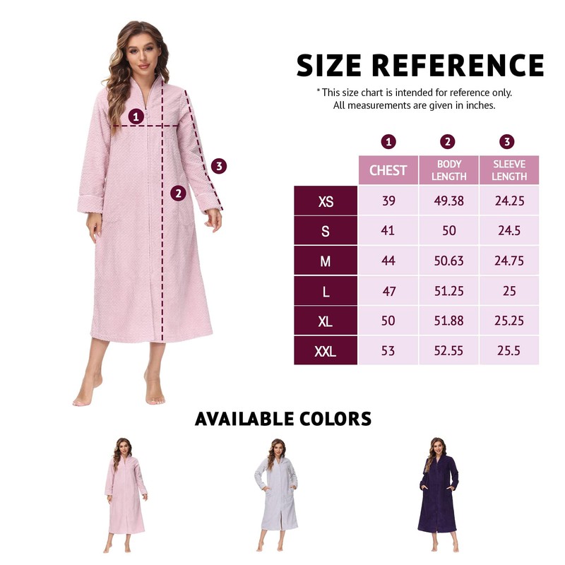 - The bathrobe comes with front zipper design making it easy to put on and overalll cute modern design with collar and cuff trim accent for sophisticated look and added warmness.