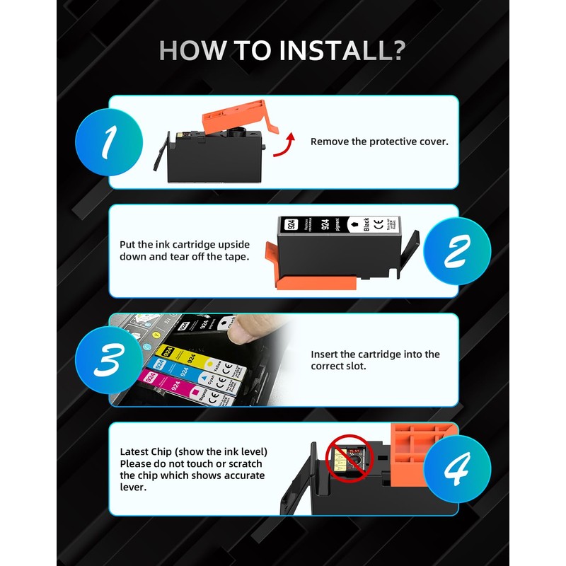 - 【High Compatibility】924 ink cartridges combo pack Replacement for HP 924 ink (With Chip, Not Original)