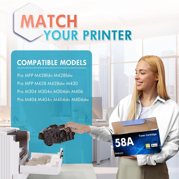 inkalfa CF258A 58A Toner Cartridge Black 58X CF258X Compatible Replacement for HP 58A CF258A M428fdw for HP Laserjet MFP M428fdw M428fdn M428dw M404 M428 Pro M404n M404dn M404dw Printer 2 Pack with Chip