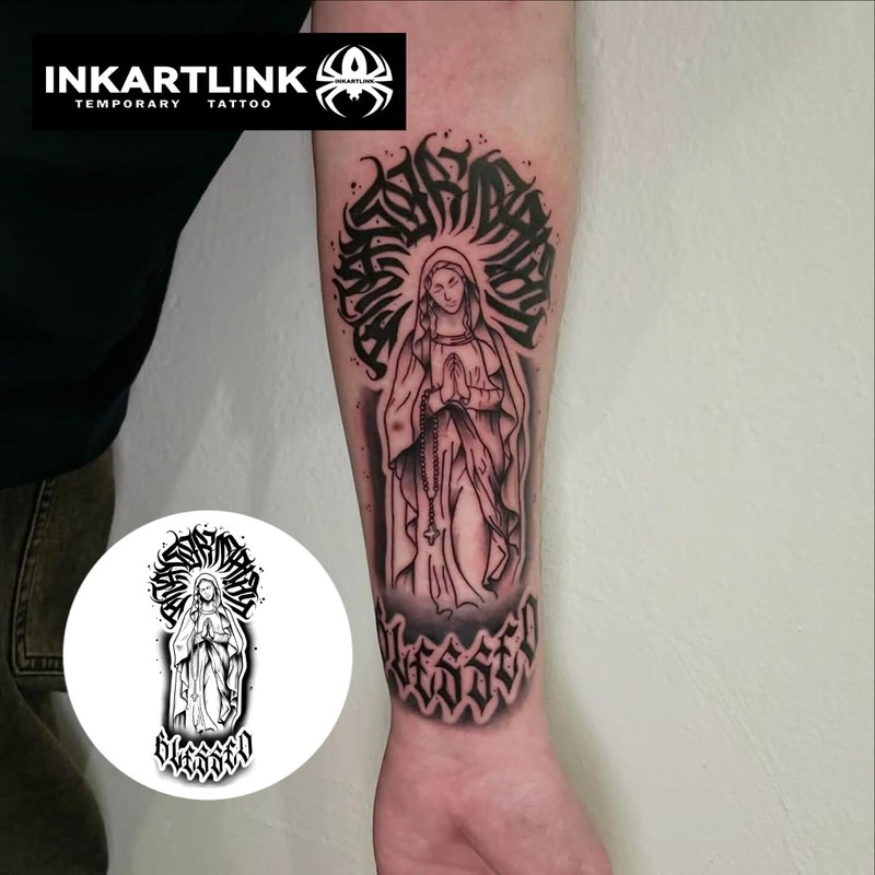 INKARTLINK Semi Permanent Tattoo, party tattoo, beautiful and realistic design, fun tattoo experience, cruelty-free, non-reflective, waterproof (Holy Mother 3)