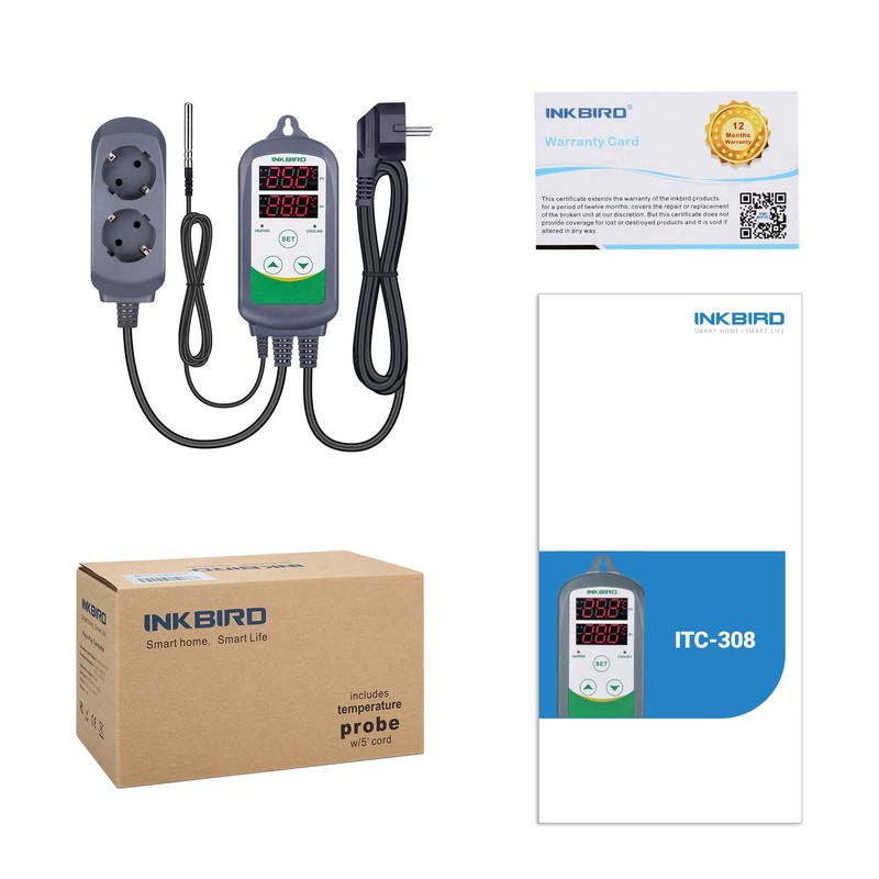 Inkbird Inkbird ITC-308 Digitaler Temperaturregler mit fhler, Heizen Khlen Temperaturschalter, 230V Thermostate