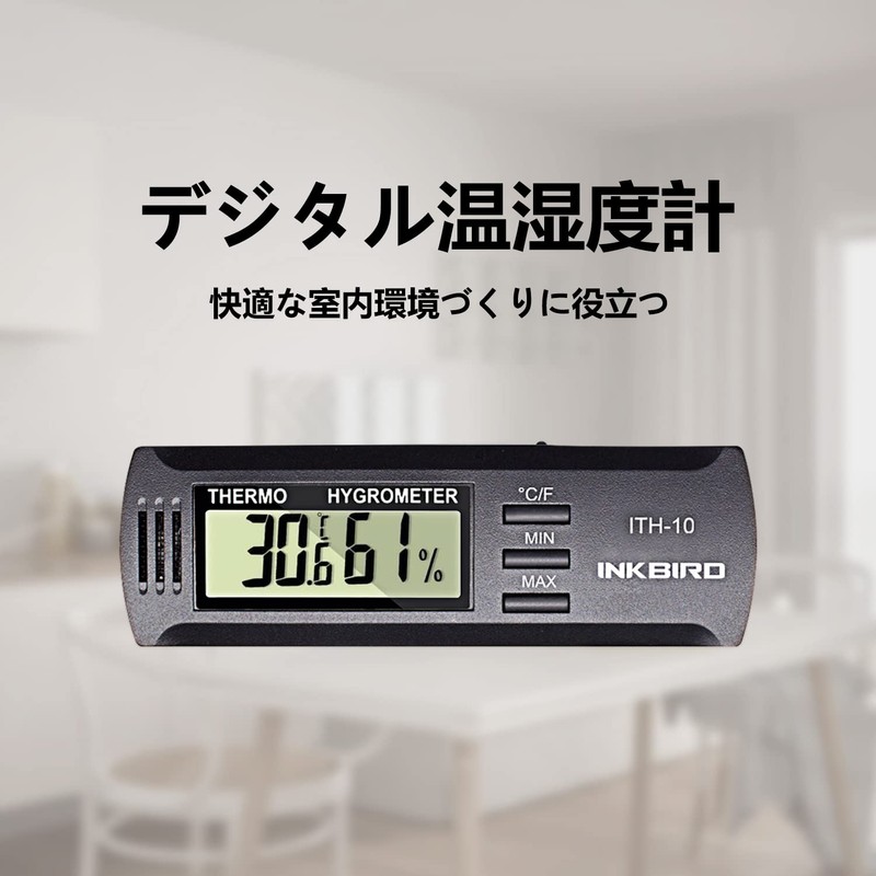 - A small thermometer/hygrometer that can be placed compactly on your desk. Maximum / lowest temperature and humidity memory function