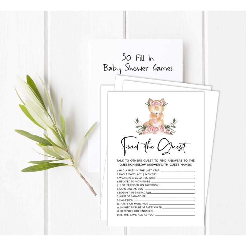 Inkdotpot 50 Find The Guest Baby Shower Game Party Supply Gender Neutral Fox Animal Icebreaker Party Game