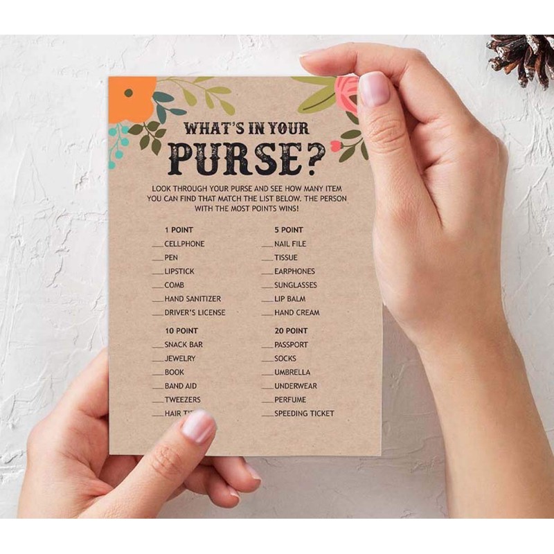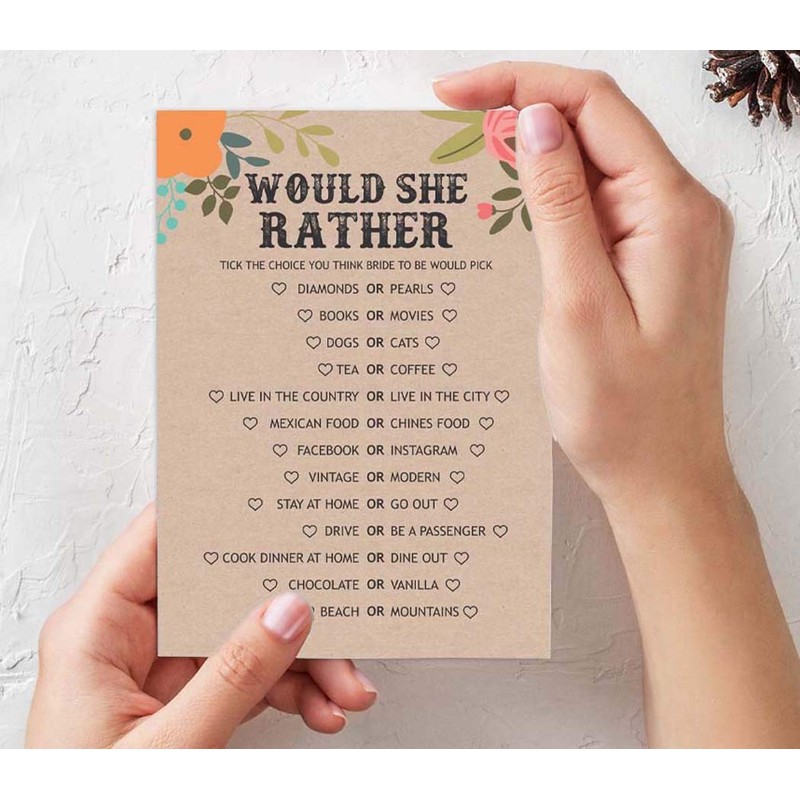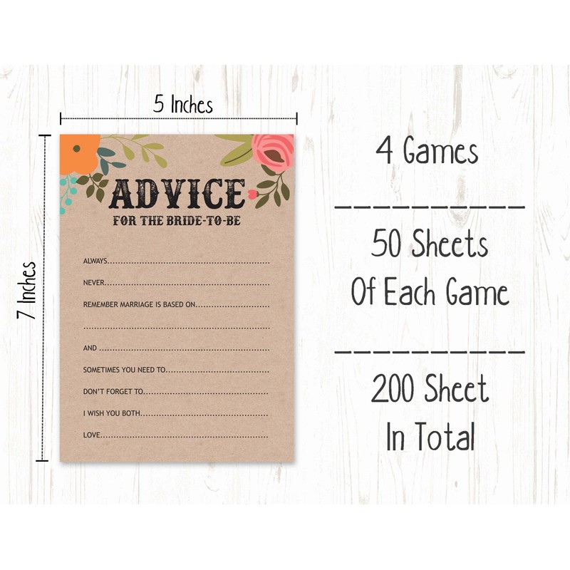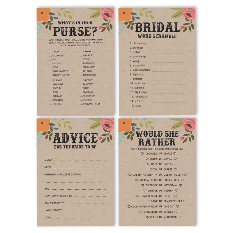 - ✅ Set Of 4 Bridal Shower Games Including Bridal Advice Cards, What's In Your Purse, Bridal Word Scramble, Would She Rather.