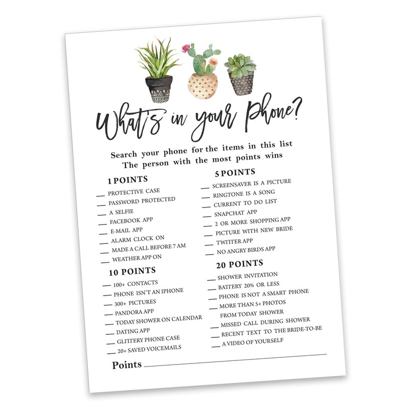 - ✅ 50-Pack What'S On Your Phone Bridal Shower Game Wedding Shower Bachelorette Party Bulk Activity Gamecards