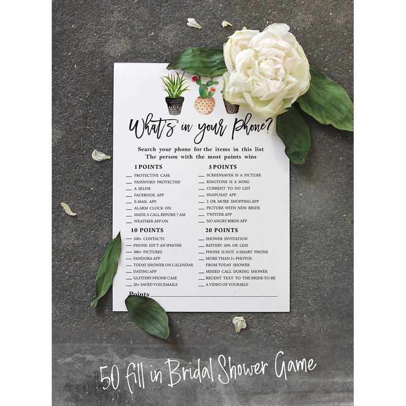 - ✅ 50-Pack What'S On Your Phone Bridal Shower Game Wedding Shower Bachelorette Party Bulk Activity Gamecards