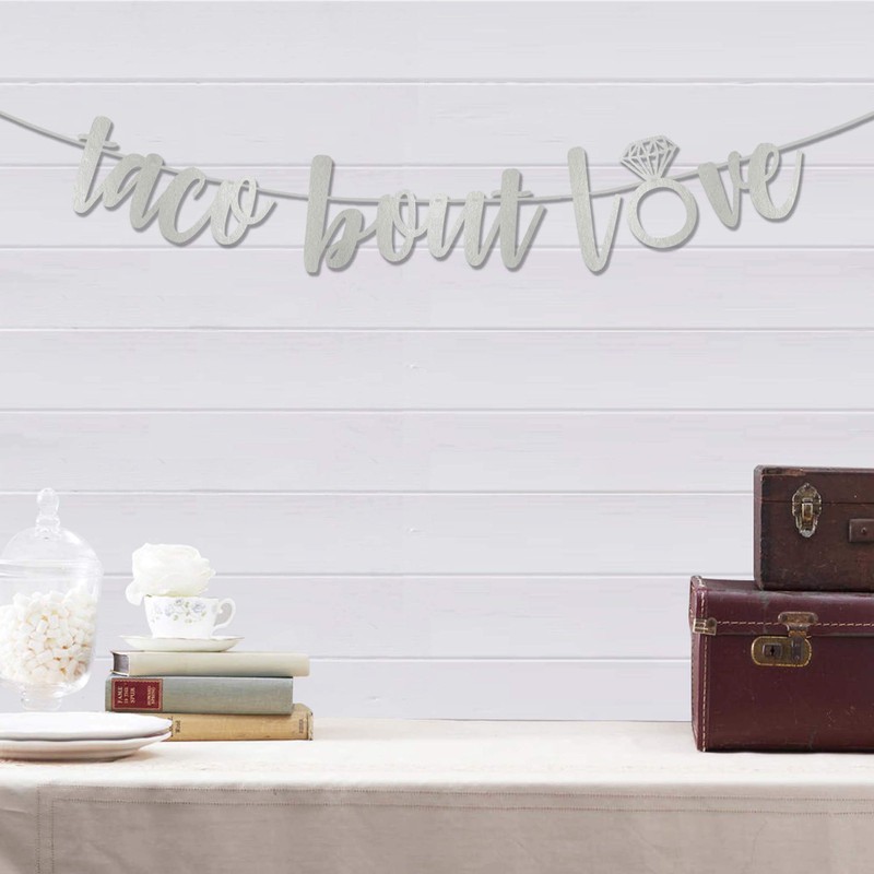 Inkdotpot Cursive Bunting BanneráTaco Bout LoveáMetallic Silver Wedding Banner Engagement Sign Photo Prop Wall Decor Bunting