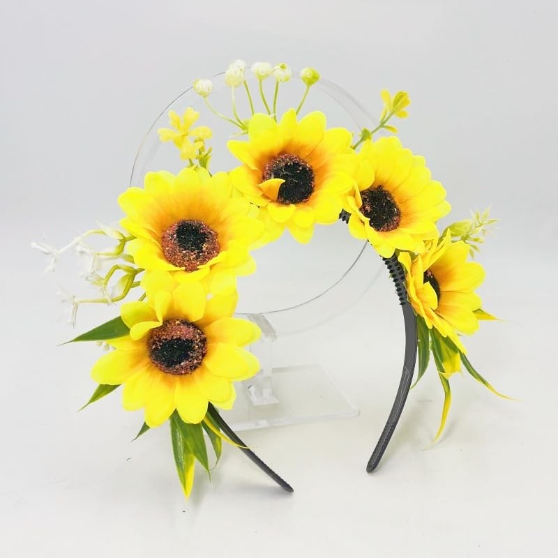 inkihuit Headband Flowers Flower Wreath Hair Sunflowers Hair Band Bridal Costume Hair Accessories Flower Headband Women Girls Hair Wreath Headpiece with Flowers for Carnival Fancy Dress Wedding