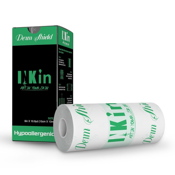 INKin Derm Shield Tattoo Aftercare Bandage Roll 6 in X 10.9 Y, Clear Second Skin Tattoo Cover Tape Wraps for Faster Healing and Protection - Sterile, Waterproof Adheisve Bandages