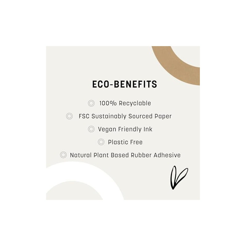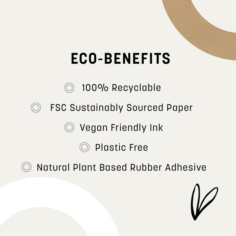 - ECO: Plastic Free | 100% Recyclable | FSC Sourced Paper | Natural Rubber Adhesive | Vegan Friendly.