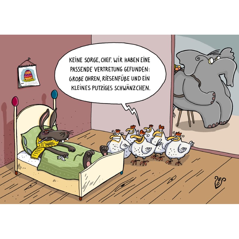 Inkognito Postcard | Occasion: "Easter", motif: Easter bunny and elephant "representation", artist: Birgit Dodenhoff, item no.: 18218, by Berliner Verlag