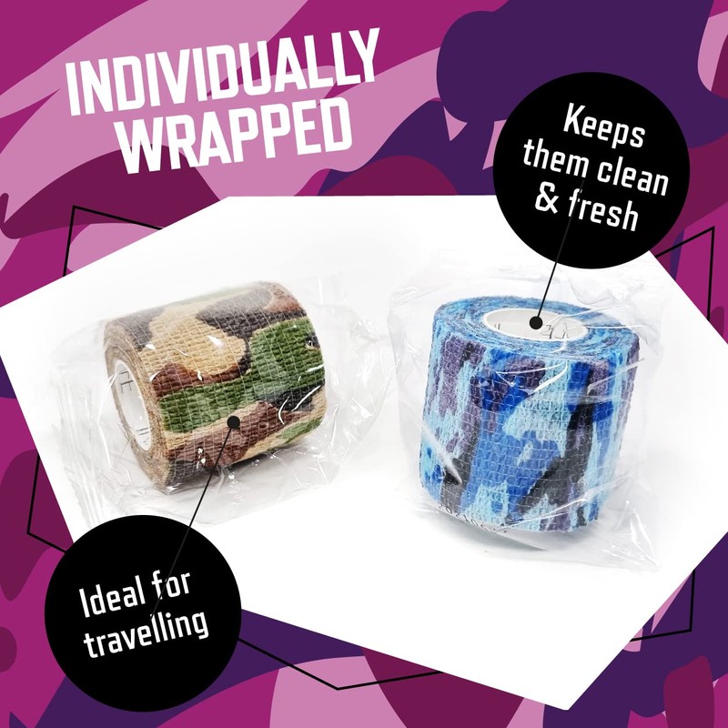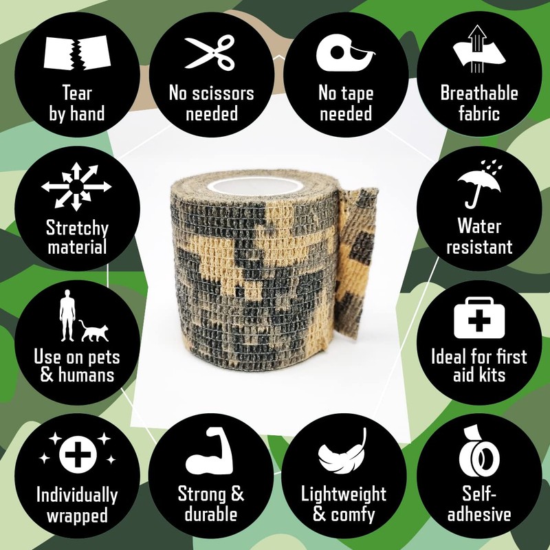 - Inksafe Assorted Camouflage Colour Self Adherent Adhesive Cohesive Bandages 5cm x 4.5m Box of 12
