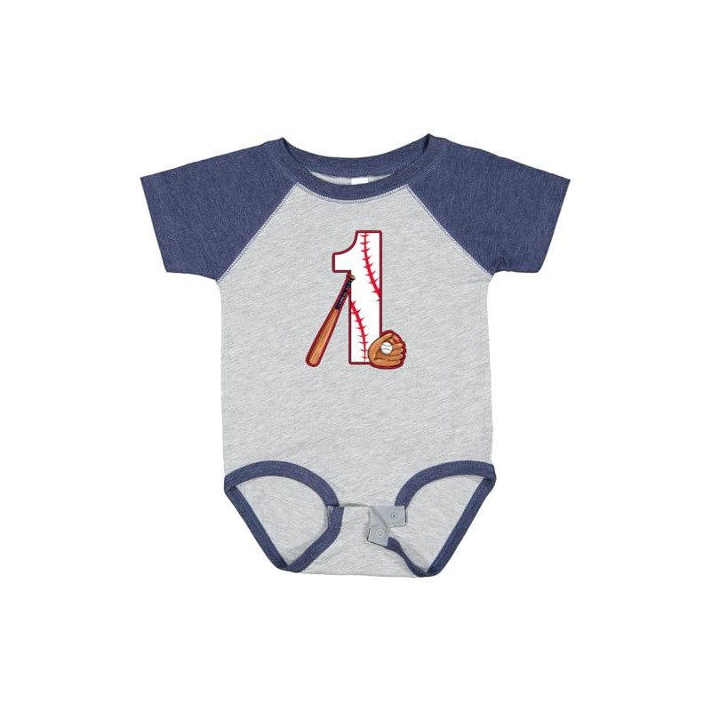 inktastic Baseball First Birthday- 1 Year Old Baby Bodysuit 18 Months Heather and Navy 2caf0