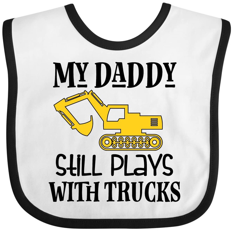 • Construction digger truck Baby Bib with my Daddy still plays with trucks quote for boys