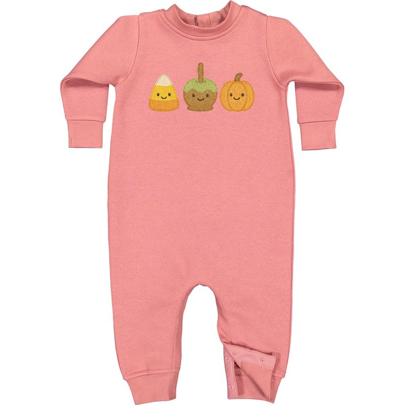 inktastic Cute Fall Candy Corn Caramel Apple Pumpkin Faces Baby Fleece Romper 6 Months Mauve 46402