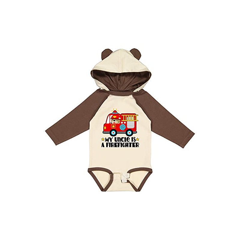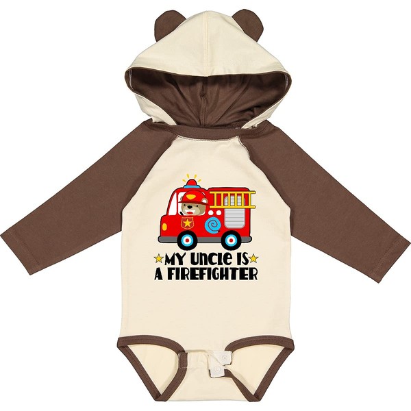 inktastic Fireman Uncle Is a Firefighter Long Sleeve Creeper 12 Months Natural & Brown W Ears 35f79