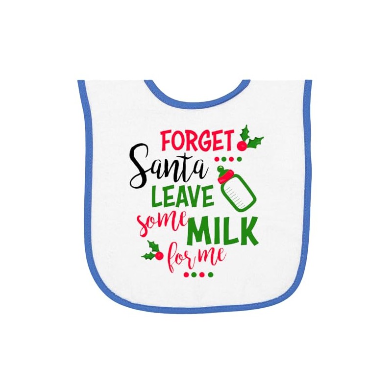 inktastic Forget Santa Leave Some Milk for Me with Holly and Bottle Baby Terry Cloth Bib White and Royal 2dfc8
