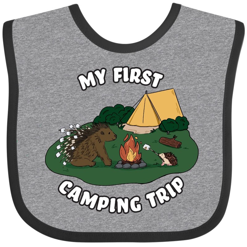 - Celebrate the great outdoors! My First Camping Trip-Camping Hedgehog Baby Bib. Ideal as a gift for a camping buddy or a summer birthday!