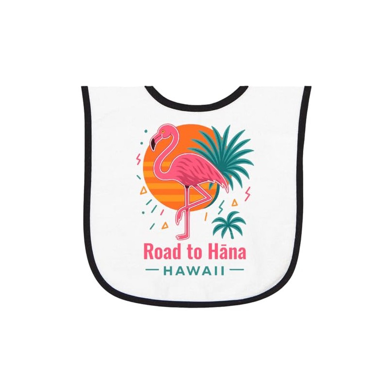 inktastic Road To Hana Hawaii Flamingo Tropical Vibes Baby Terry Cloth Bib White and Black 46c86