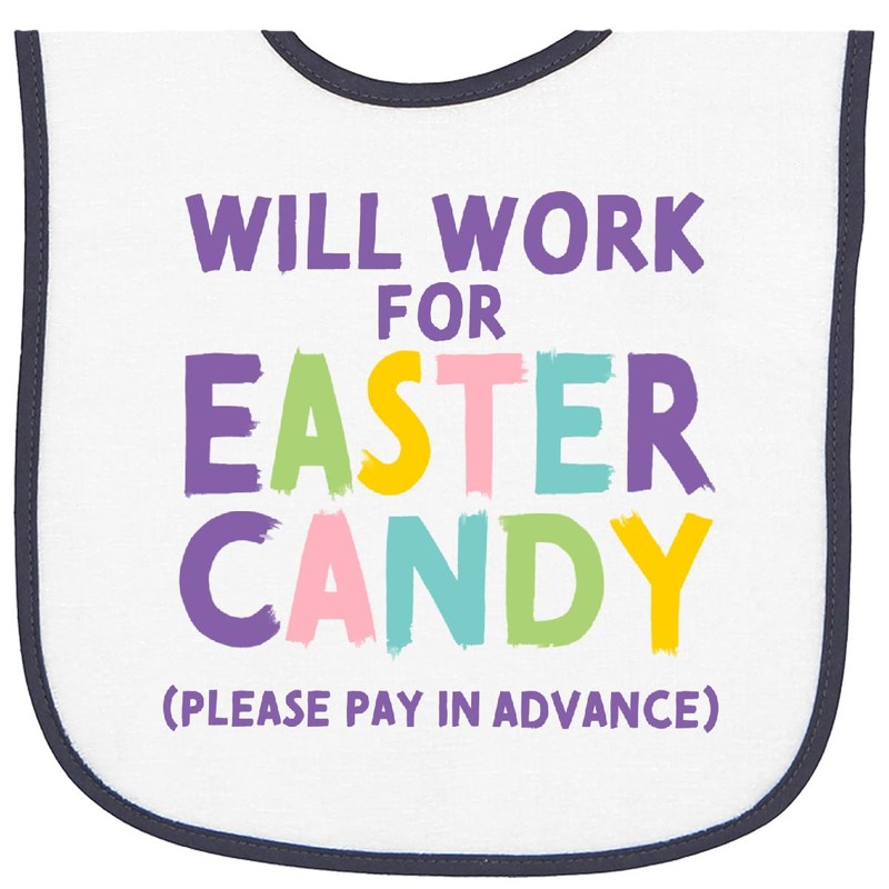 - Get all the candy you can with these, Will Work for Easter Candy Please Pay in Advance Baby Terry Cloth Bib.