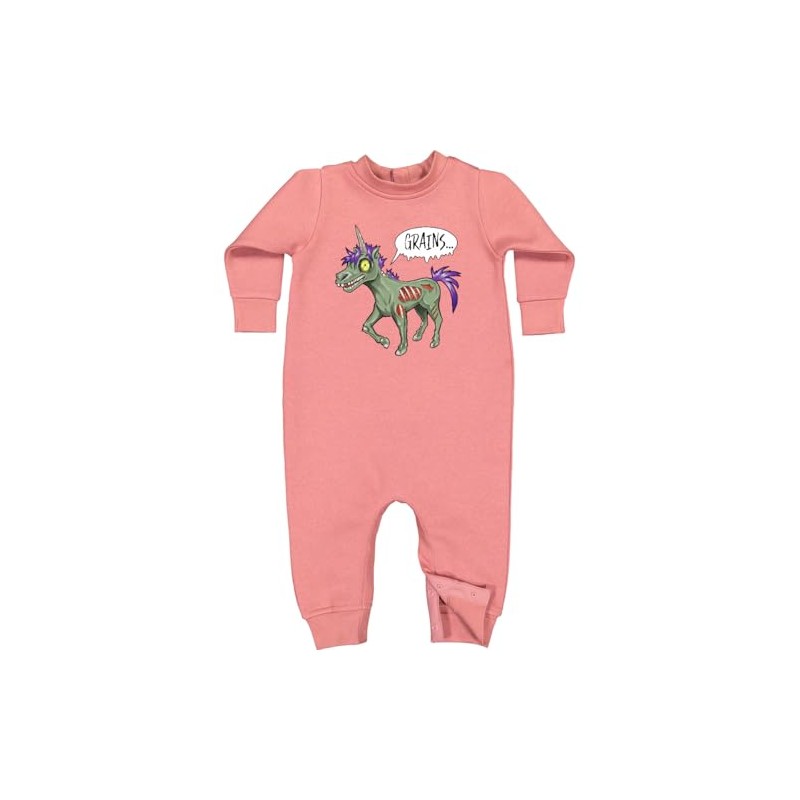 inktastic Zombie Unicorns Wants Grains- Halloween Baby Fleece Romper 6 Months Mauve 33196