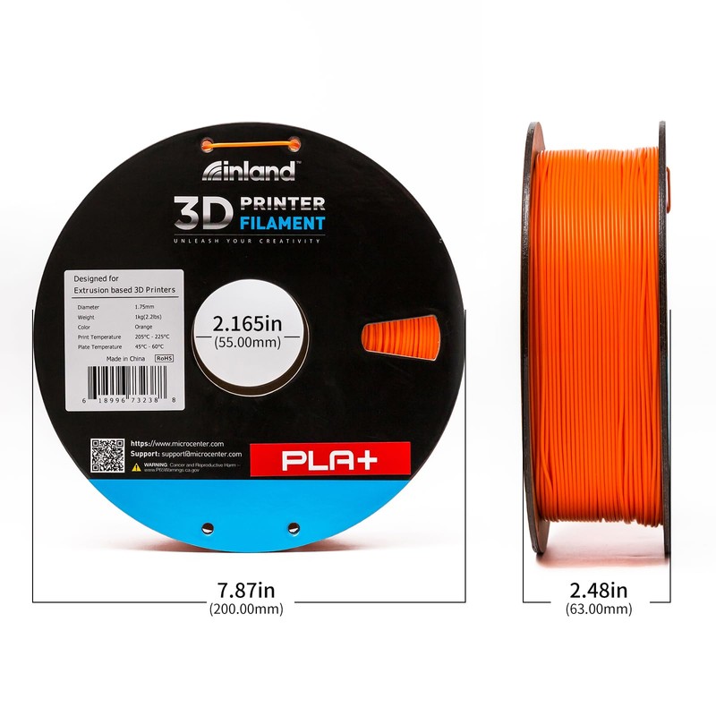 INLAND Micro Center PLA+ 3D Printing Filament 1.75mm - Orange PLA Plus 3D Printer Filament - PLA Pro Dimensional Accuracy +/- 0.03 mm - 1 kg Cardboard Spool (2.2 lbs)