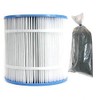 This Bundle includes two items: the Nu-Clear Canister Filter Replacement Cartridge, 25 Micron, for the Nu-Clear Canister Filter Model 533 and 1.5 lbs of Inland Seas Premium Pelletized Activated Carbon (it fits in the middle of the cartridge). This package can also be used for the The Nu-Clear Canister Filter Model 530. The Model 530 does not come from the factory with carbon, but you may want to use carbon with it. Carbon should be replaced in aquariums every one to two months. Cartridge dimensions: 8.5" wide and 8 3/8" tall. Center hole is 4" wide.