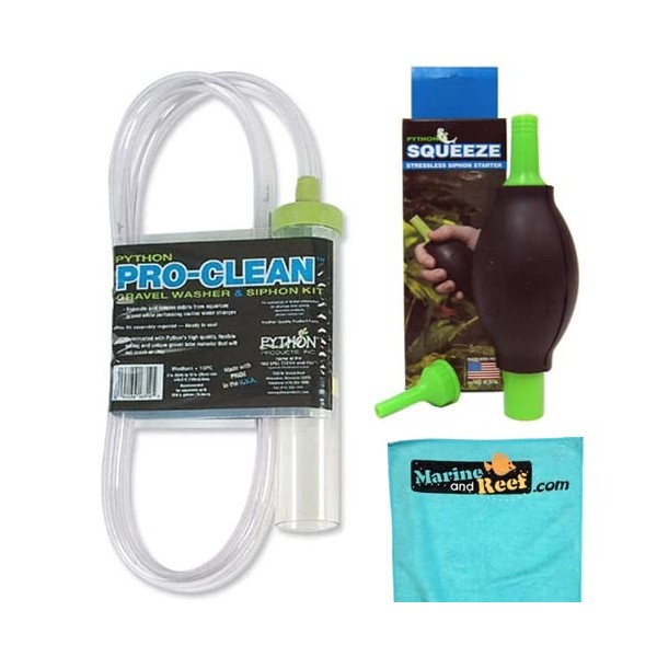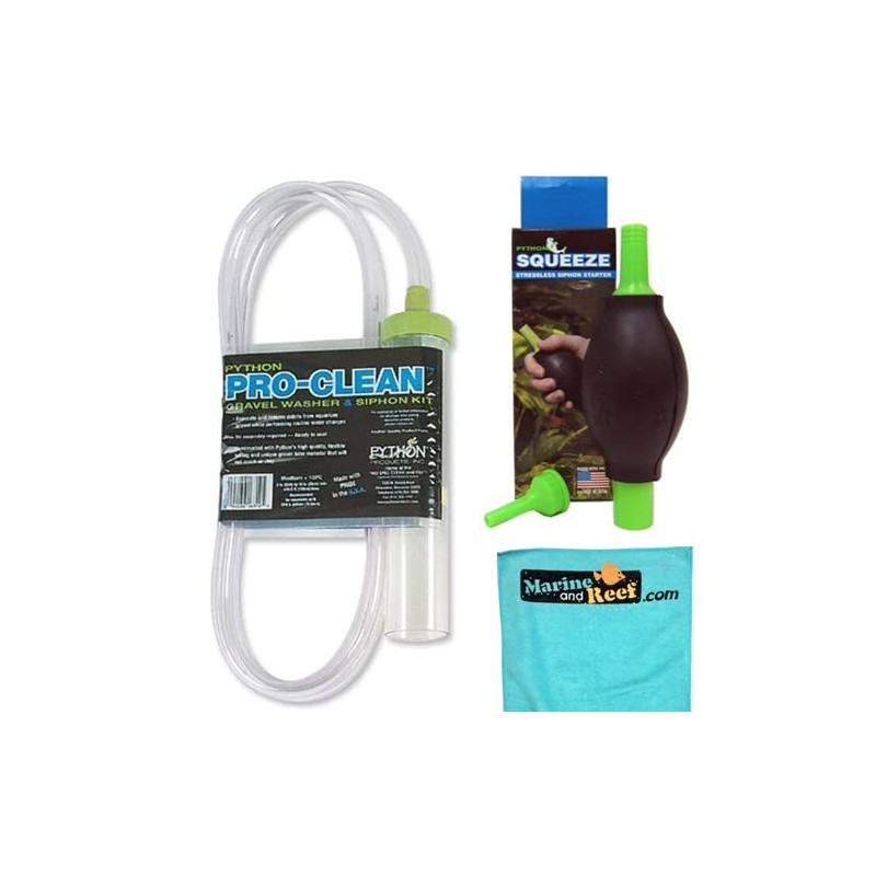 - This Bundle includes THREE items: the Python Pro-Clean Small, 1" X 12" Tube w/ 6 ft. Hose; the Python Squeeze Stressless Siphon Starter; & a MarineAndReef.com Cleaning Towel. Though listed as an Inland Seas Bundle, all the Python products come from Python and are in their original packaging.