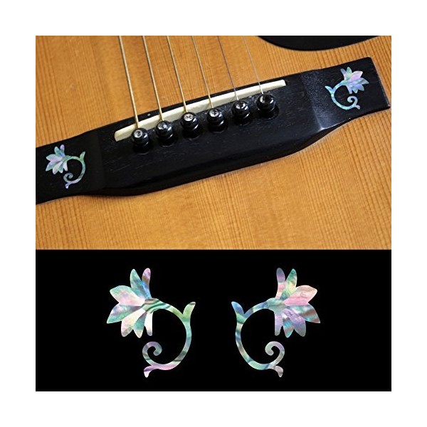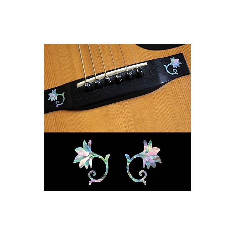 Inlay Sticker Decal For Acoustic Guitar Bridge Side In Abalone Theme - Oriental Flower (MX) Set