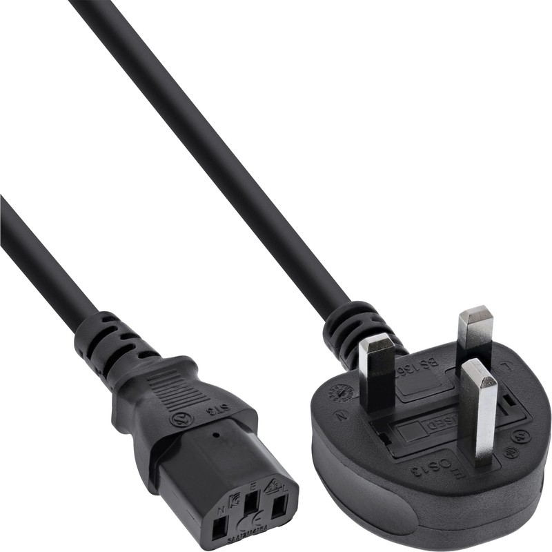 InLine 16650E Power Cable England Plug to IEC Plug C13, 0.5 m