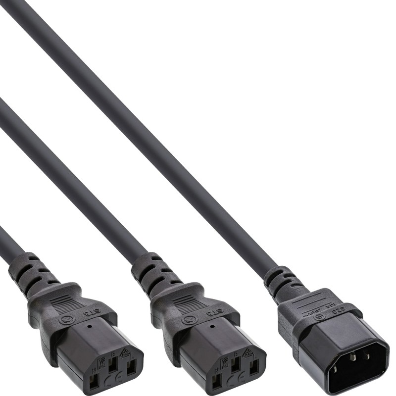 InLine Mains Y-Cable for IEC C14 to 2X IEC-C13, Black 5 m