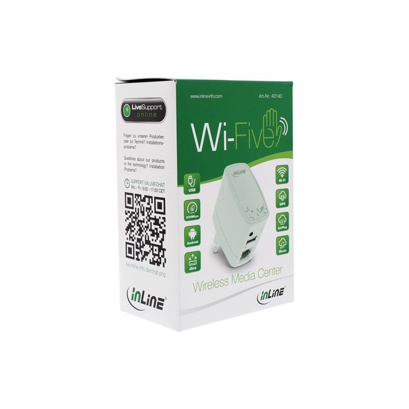 - The InLine Wi-Five Wireless Media Center combines five functions in one device: 1. Music streaming / 2. Data streaming /3. Access Point /4. Repeater / 5. routers