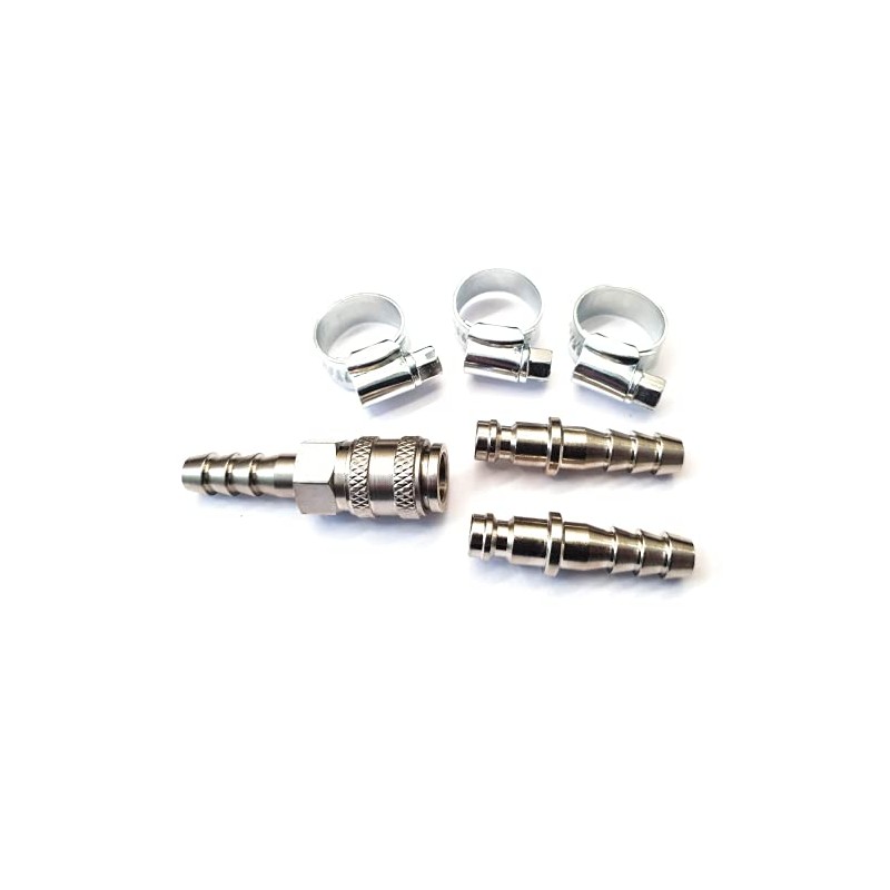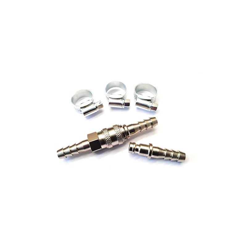 Inline Quick Release GAS Fitting Coupling Set with extra Nozzle - Fits 8mm ID Propane or Butane Gas Hoses + 3 Jubilee Clips