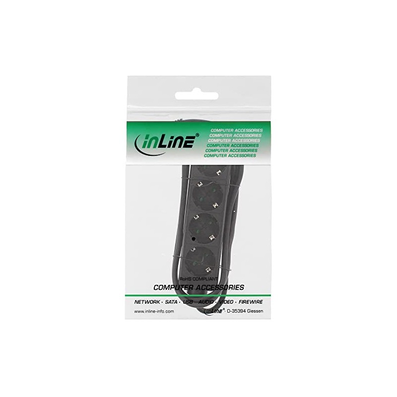 InLine® Socket Strip, 4-Way Protective Contact 3 m, Black