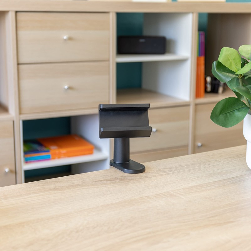 - Space-saving attachment without screws, suitable for under-table mounting, for table tops up to 40 mm