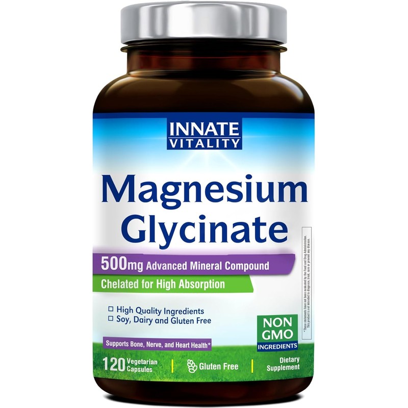 Innate Vitality Magnesium Glycinate 500mg | 70mg Elemental Magnesium Supplement- High Absorption, Non Buffered, Non-GMO & No Gluten - Nerve, Muscle, Bone Health - 120 Vegan Capsules Magnesio